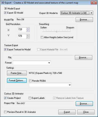 In the 3D Model Export section, click the Browse... button, and specify a name for the 3D model.