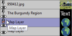 ach of the layers in the project is shown in the Layers list to the right of the Viewer. For each layer this shows whether the layer is visible, the name of the layer, an icon representing the composite mask options, and a thumbnail image of the layer. For map and image/movie layers, a thumbnail image of the contents of the layer is shown.