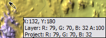 Displays a window showing the color of the layer, and composite project, under the mouse pointer: