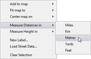Right-click the map, point to Measure Distances in or Measure Height in on the context menu, then click the appropriate unit on the submenu.