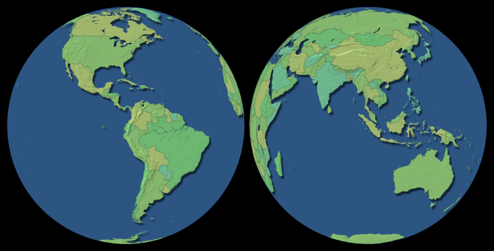 In the majority of cases the Globe projection is most suitable as it is ideal for zooming in animations, and land shapes look familiar when in the middle of the picture. Its chief disadvantages are that shapes get distorted near the horizon, and only half the world can be seen at any one time.