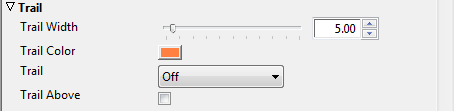Use Trail Width and Trail Color to define the width and color of the trail.