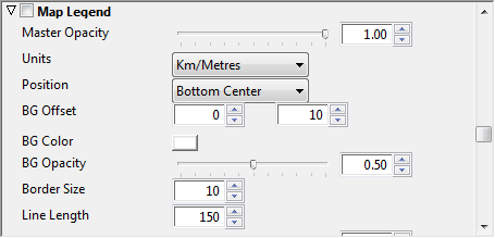 Units: Defines the legend’s units in kilometers/meters, miles/yards and miles/feet.