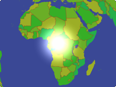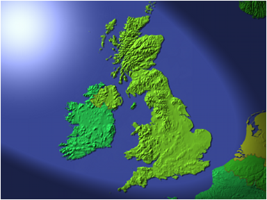 Each of the map, image, text or shape layers in your project can include one or more lights which you can use to focus the viewer’s attention, or add depth and perspective to the animation. Three different types of light are provided, and you can use these either individually or in combination to achieve a wide range of different effects.