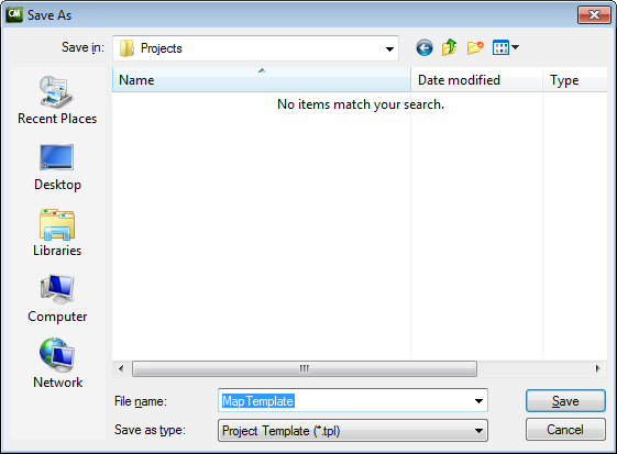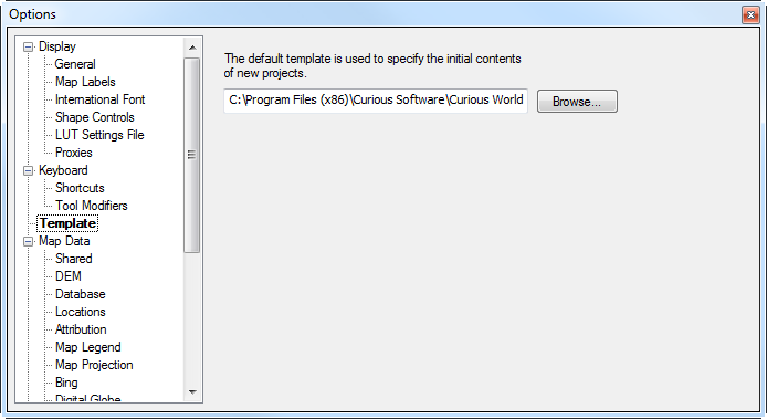 Click the Browse... button and select the appropriate template file. The default project template is used whenever you create a new project by selecting Create map project in the Welcome or New Project dialog box.