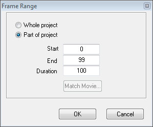 Select Part of project, and specify the Start time, and the End time or Duration, of the section of the project you want to work on: