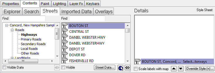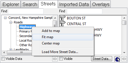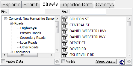 1. Click the Streets tab in the map layer Contents panel to display the street data sets you have loaded.