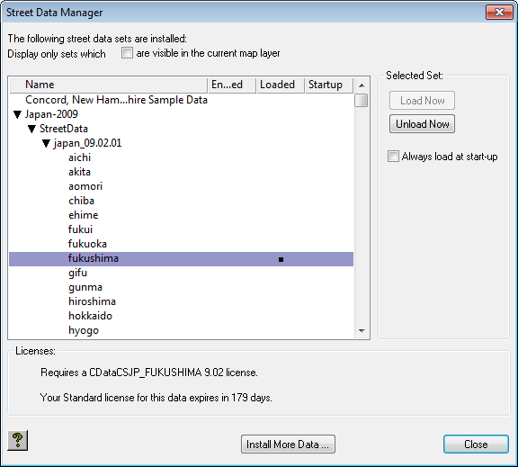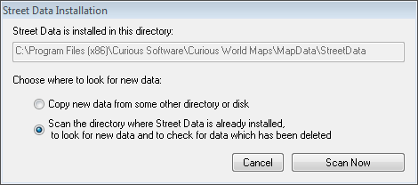 • Or select Scan the directory where Street Data is already installed ... to automatically locate new data. Then select the data set you want to load and click the Load Now button.