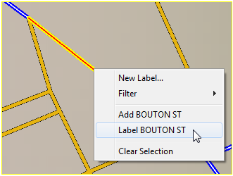 • Label: Adds the feature with the label positioned at the point you clicked. If you are labeling a line feature the label will be drawn aligned with the direction of the feature.