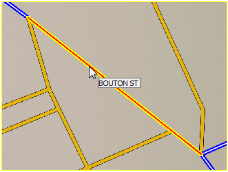 1. Select the Browse Street/Shape Data tool. As you move this over the map a tool-tip shows you the name of each street data feature:
