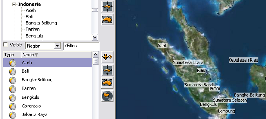 The explorer tab is used for selecting a location from a list of places derived from the server’s database. The list is displayed in a tree format showing countries, regions, cities, and so on.