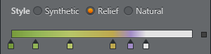 When defining land styles you first select whether the map should have a Synthetic, Relief or Natural style.