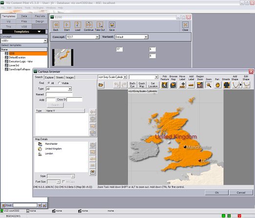 For an operator or journalist to be able to change maps, the map scenes must use the ControlMap plug-in. Also, before the scene can be used in the Viz Pilot client or Newsroom Component a map template must be created using Viz Template Wizard.