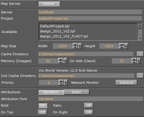 Map Server: Enables or disables Viz World Server (WoS) connection for Viz World Client (WoC).