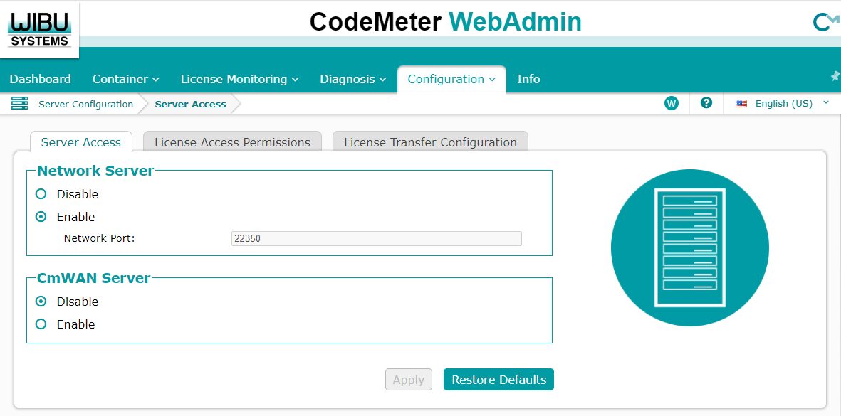 The Server Access is the main setting required to run a license server. This setting needs to be enabled to allow clients to connect to the license server and access licenses.