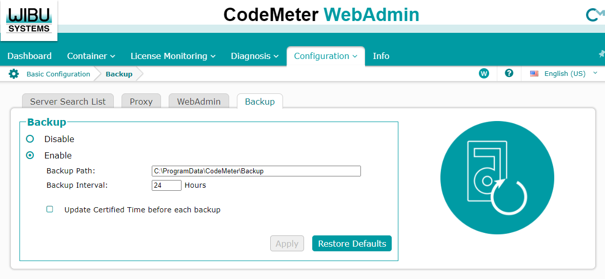This option allows to define a backup for Dongle and Software Container data.