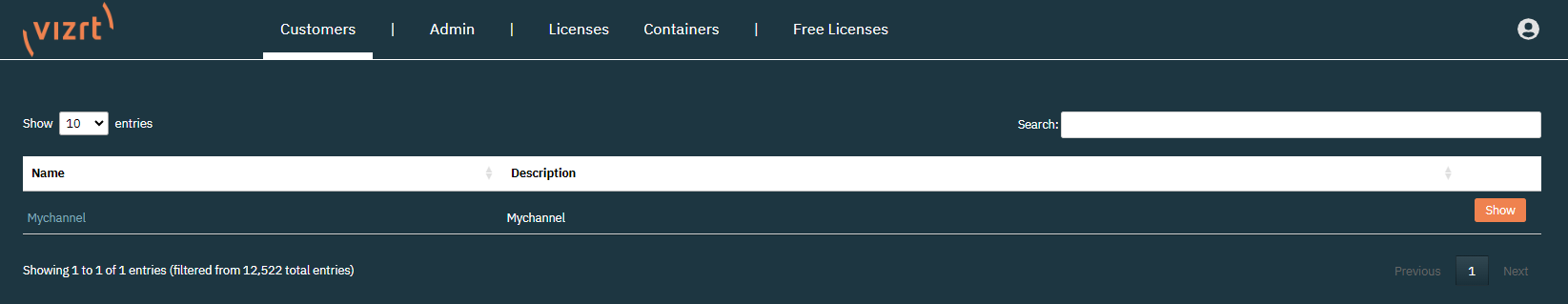 The customers section displays the child accounts of the current account. Clicking the Show button forwards to the Admin Page of the child account and provides the same functionality as described in the Admin Page.