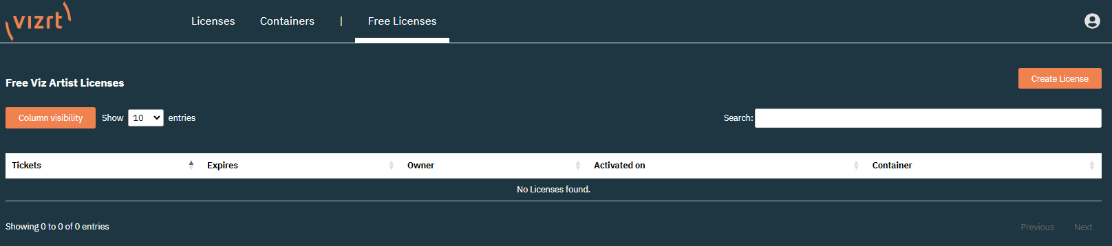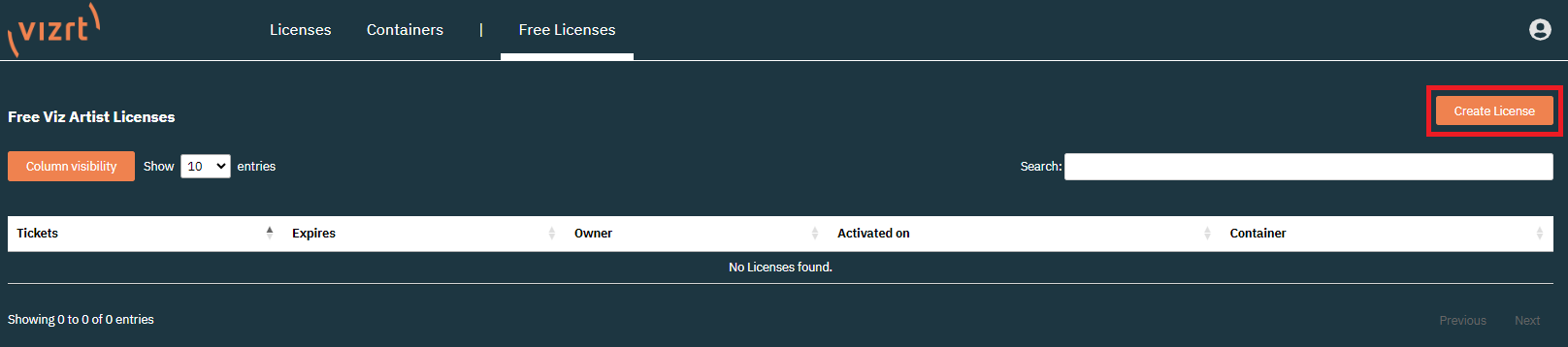 Here you are able to create Free Licenses for private or educational use. Currently this option is available for Free Viz Artist.