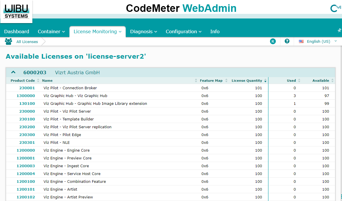 Clicking on the Product Code, shows the License Monitoring Details page where the exact users of the selected feature are displayed.