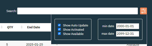 With the option field on the top right, you can filter license features according to date or specify certain states of licenses.