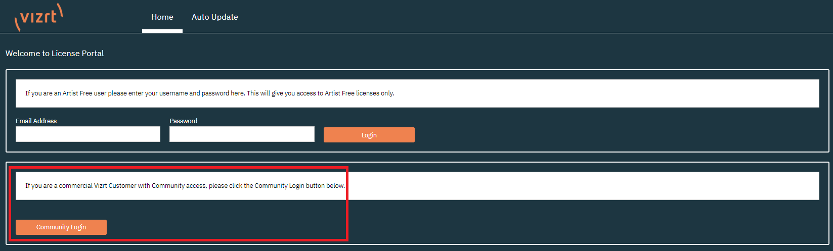 For Vizrt customers with access to other Vizrt Community Services, the Community Login page should be used.