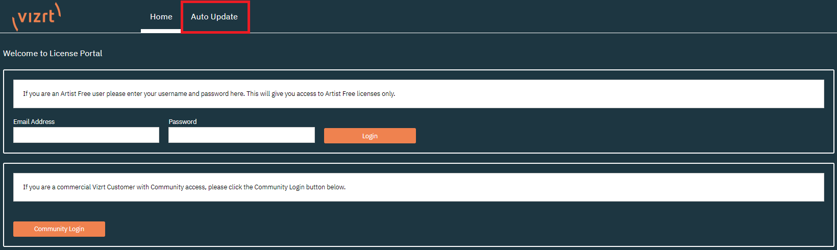 If you encounter any issues in the license portal, please use the Vizrt Community Portal (https://community.vizrt.com) and open a support case stating the issue.